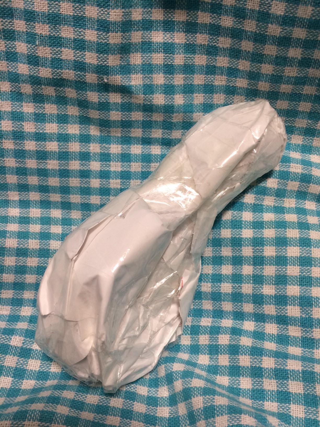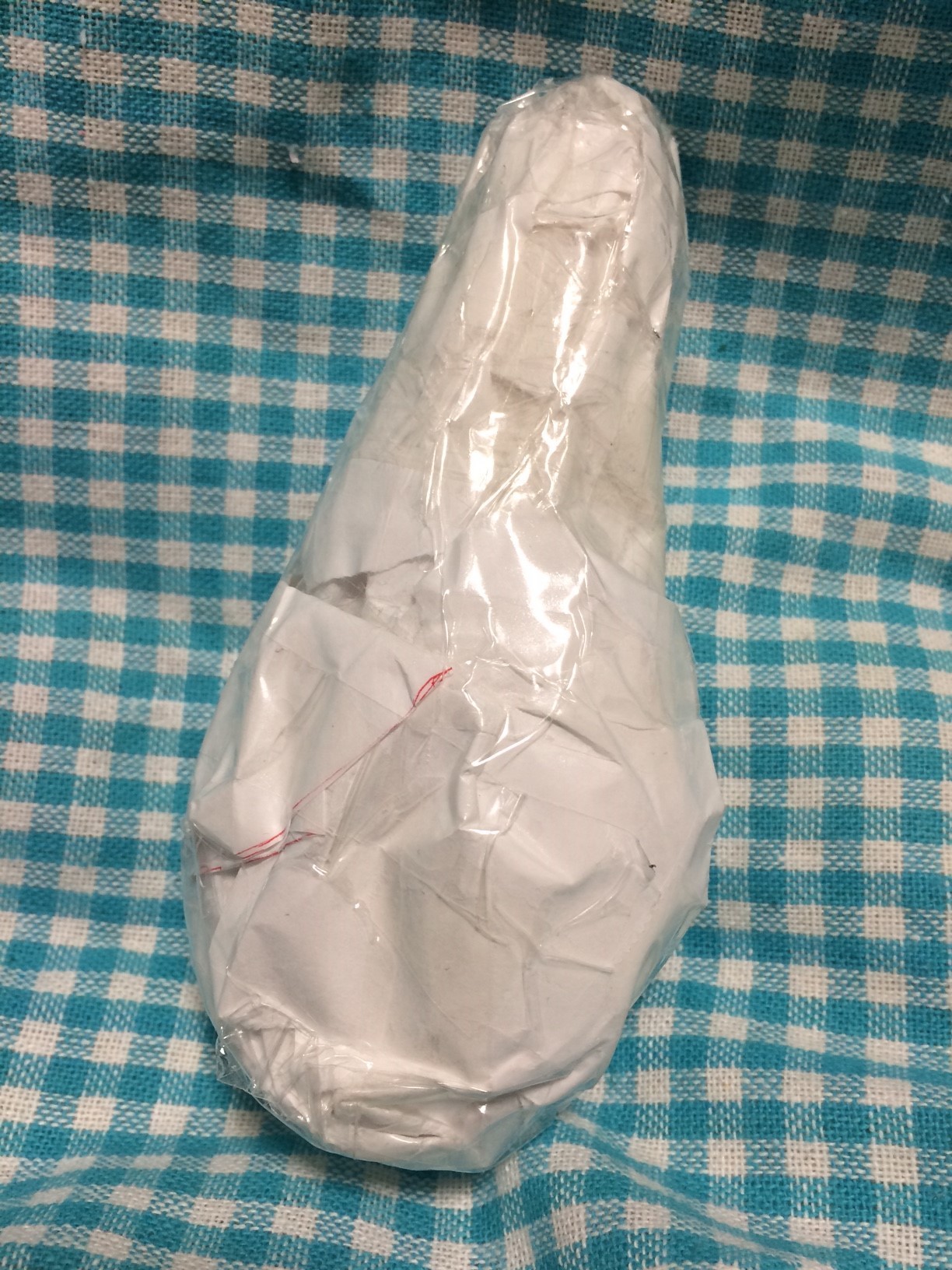 でね、次にやってみた方法は粘土をこねてぬいぐるみの形にして、それに紙を貼り付けてカットして型紙にするという方法だよ