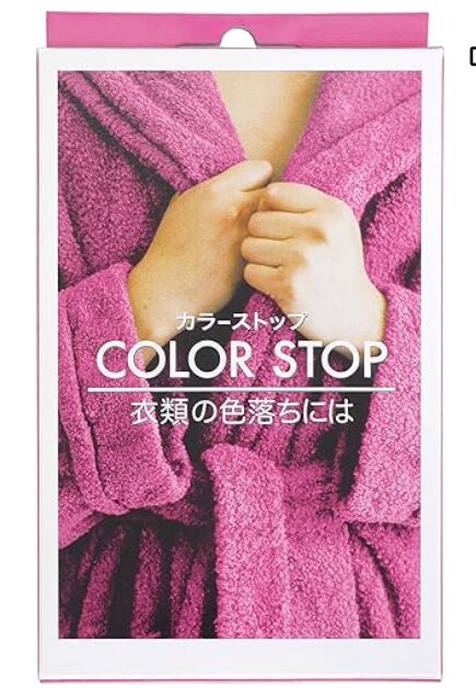 濃い色の服を着せる前に使って、脱色を防止します。