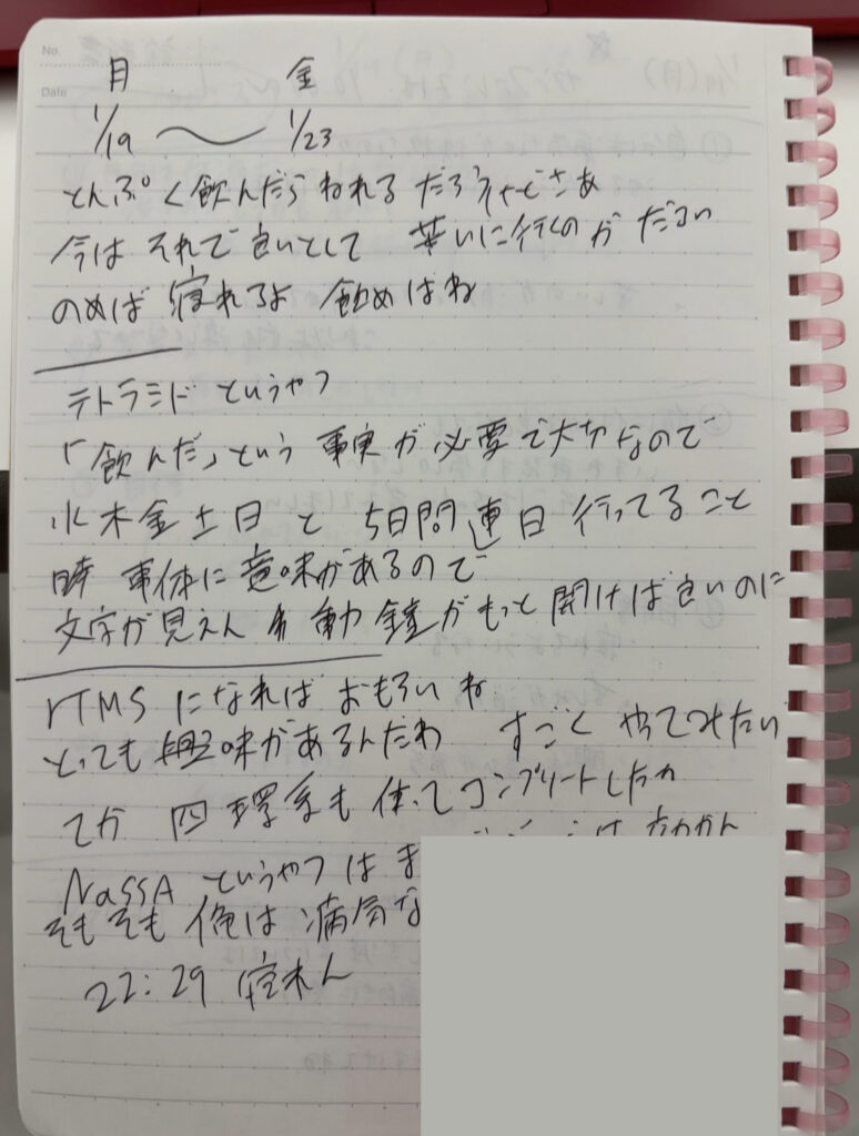 寝れない時はおもむろにノートとペンを手にとって思ったことを書いて、翌朝それを見て「うわぁ」って思うんですよね。