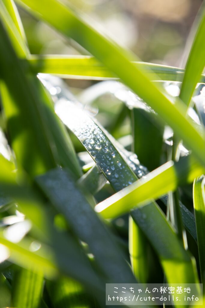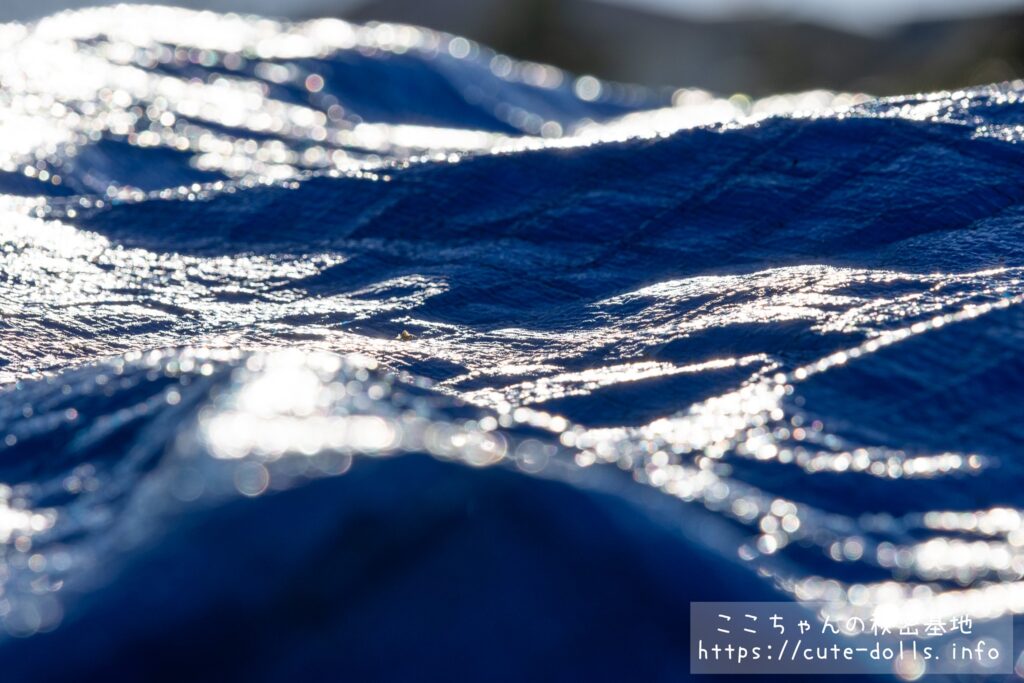 ブルーシートに付いた朝露が光ってるとこです。